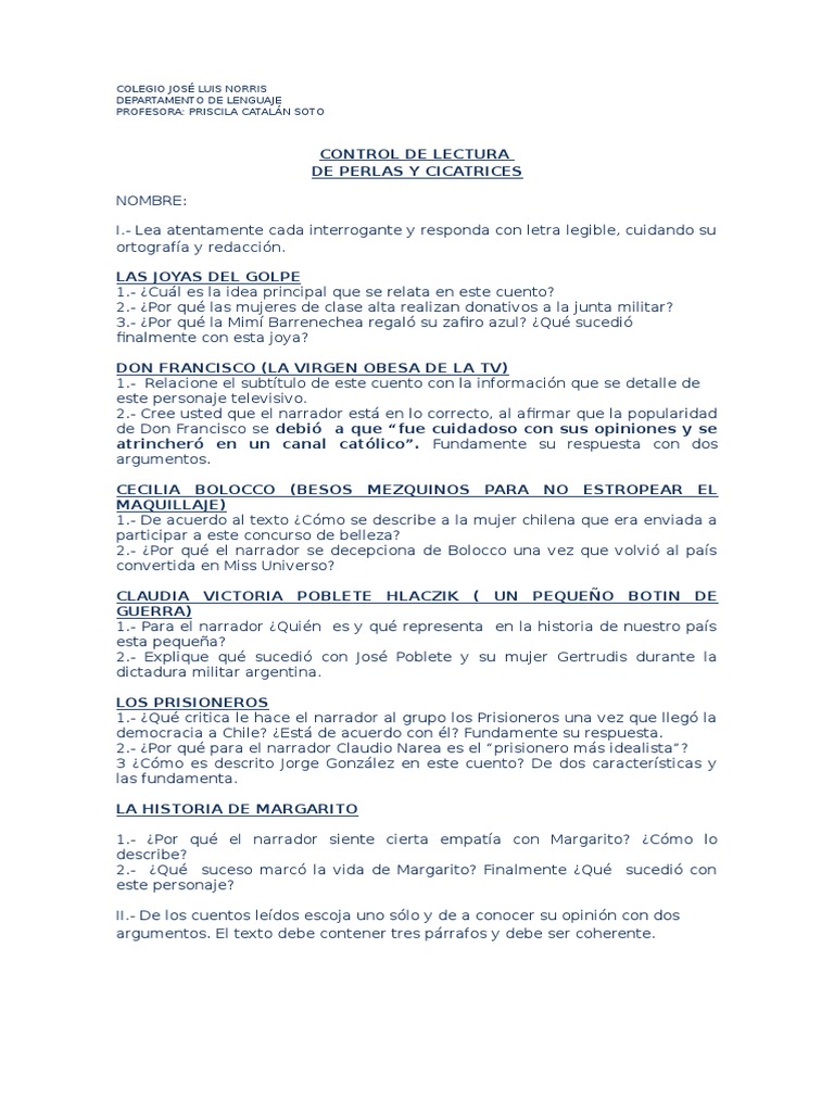 1.- Relacione el subttulo de este cuento con la informacin que se detalle de