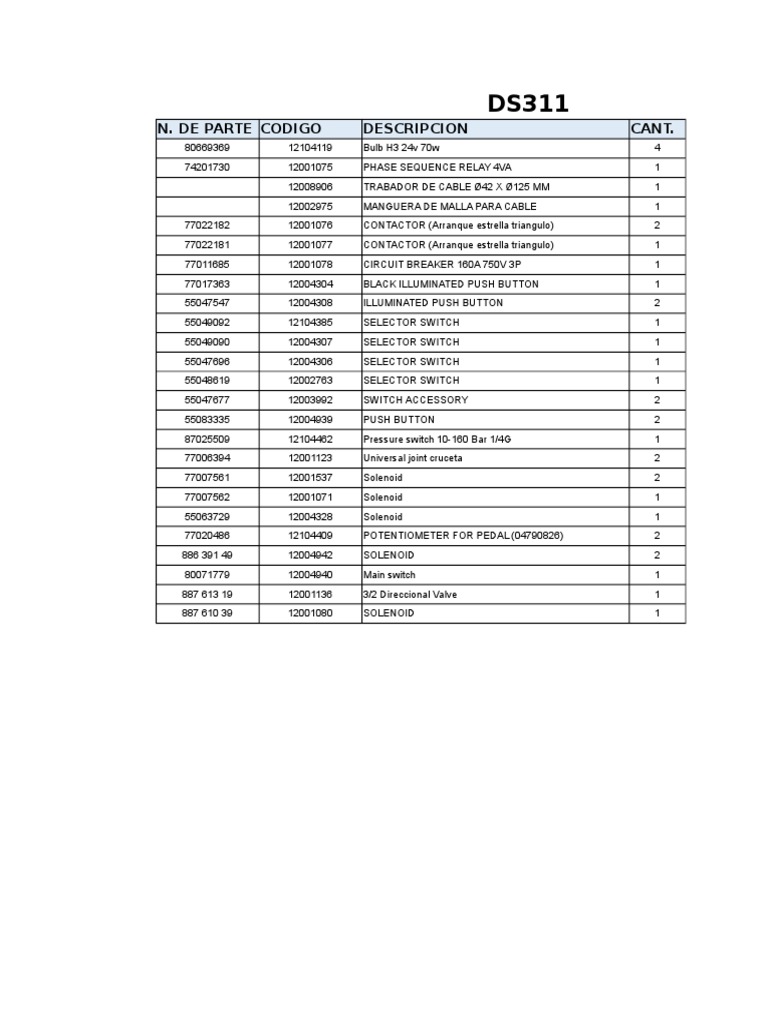 N. DE PARTE CODIGO DESCRIPCION CANT.