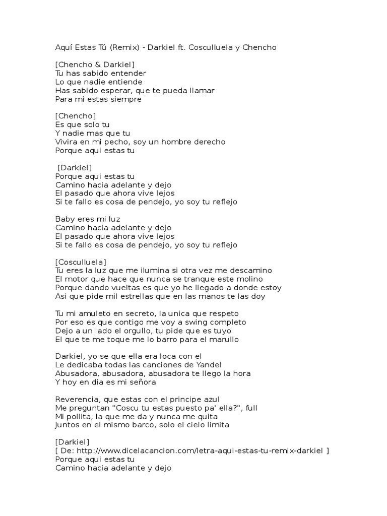 [ De: http://www.dicelacancion.com/letra-aqui-estas-tu-remix-darkiel ]