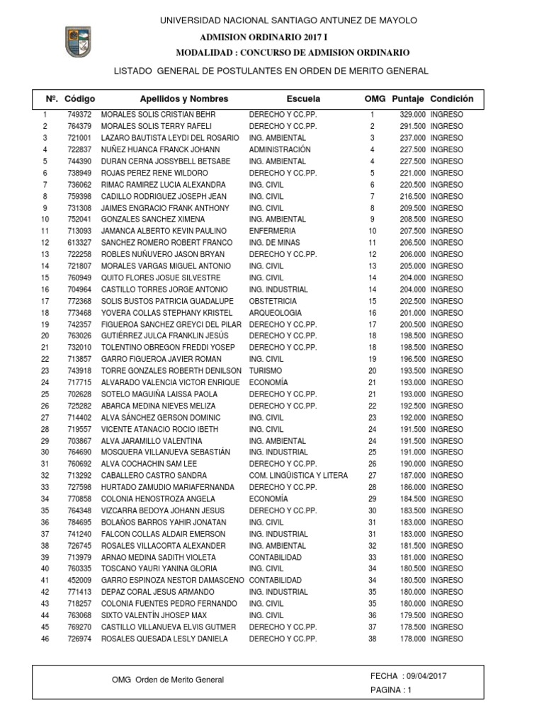65 724723 RODRIGUEZ SALAZAR JOSEPH GONZALO ING. CIVIL 49 171.500 INGRESO