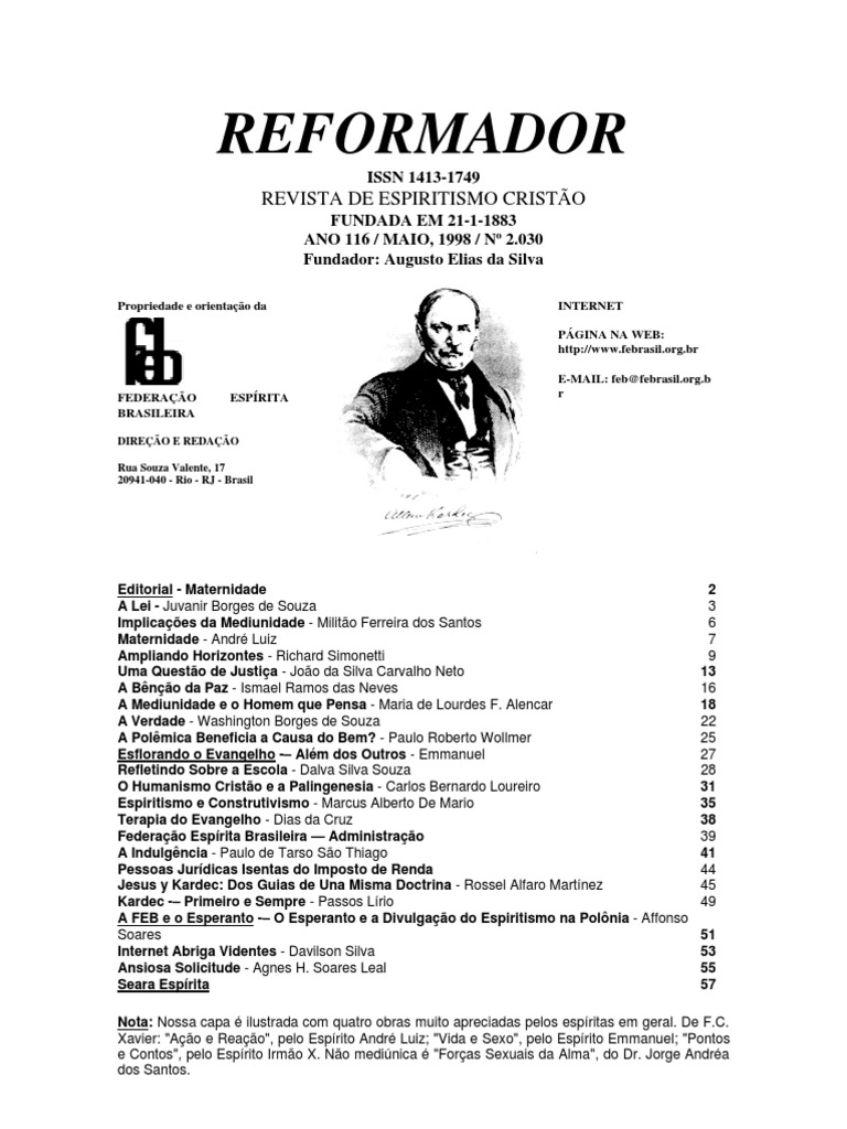 Nota: Nossa capa é ilustrada com quatro obras muito apreciadas pelos espíritas em geral. De F.C.