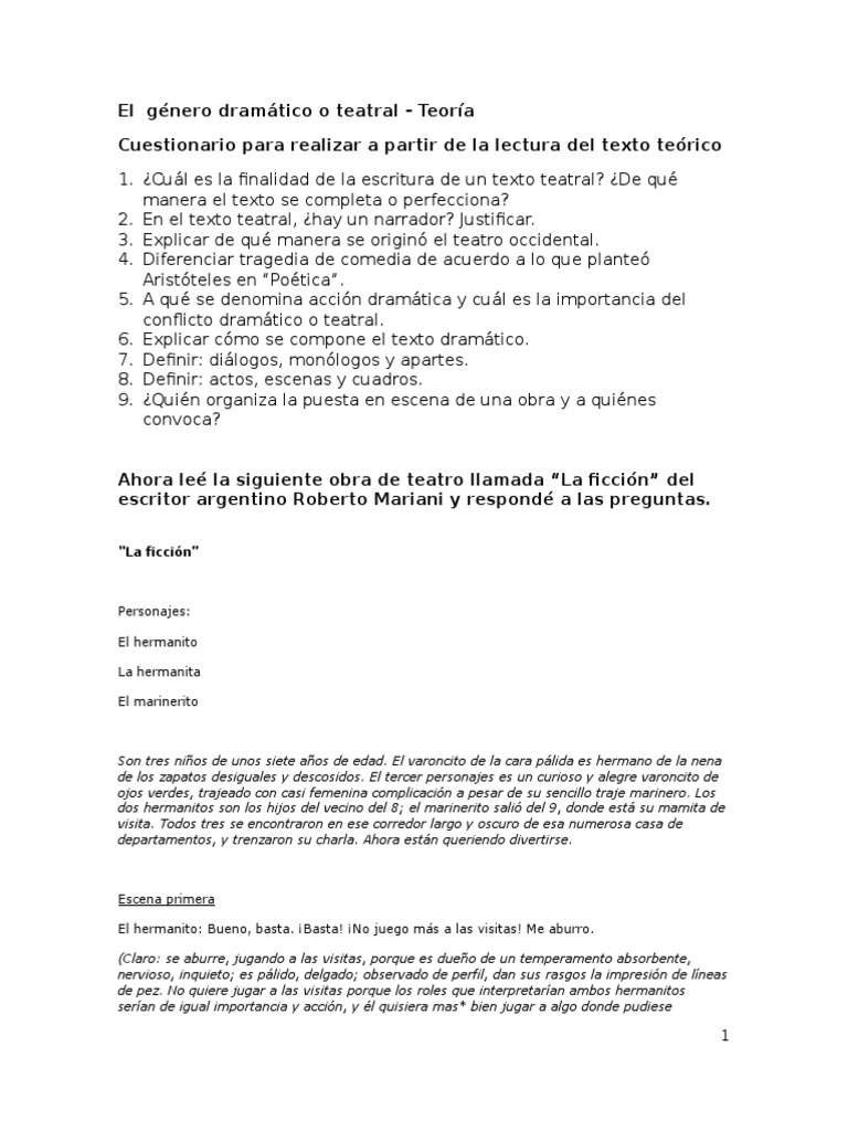 Ahora le la siguiente obra de teatro llamada La ficcin del