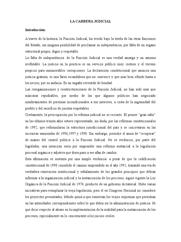 la Funcin Judicial, en el ttulo II sobre las carreras de la funcin Judicial, este ensayo se
