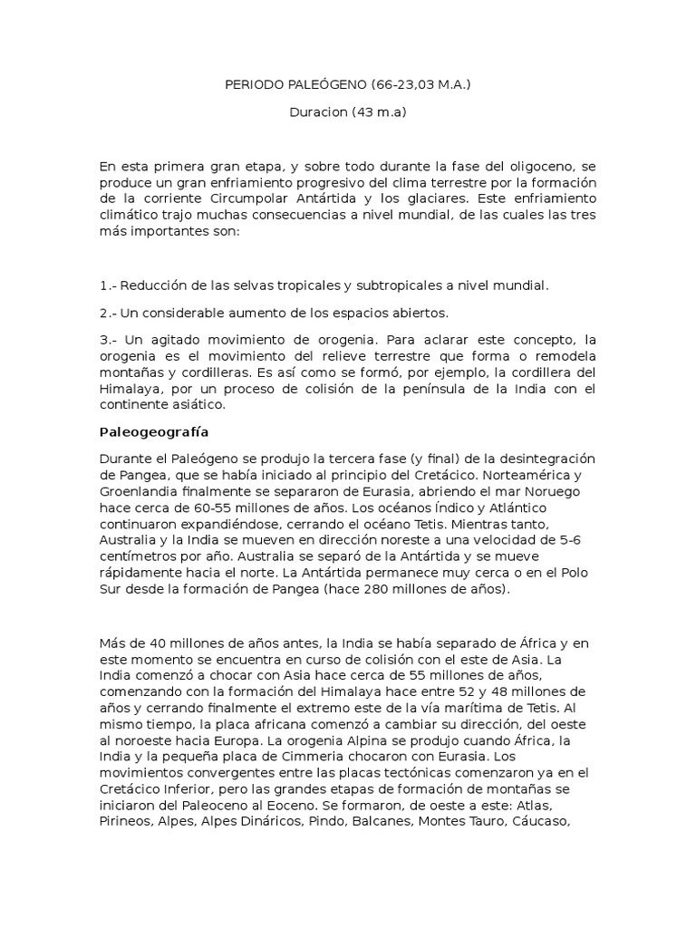 Durante el Palegeno se produjo la tercera fase (y final) de la desintegracin
