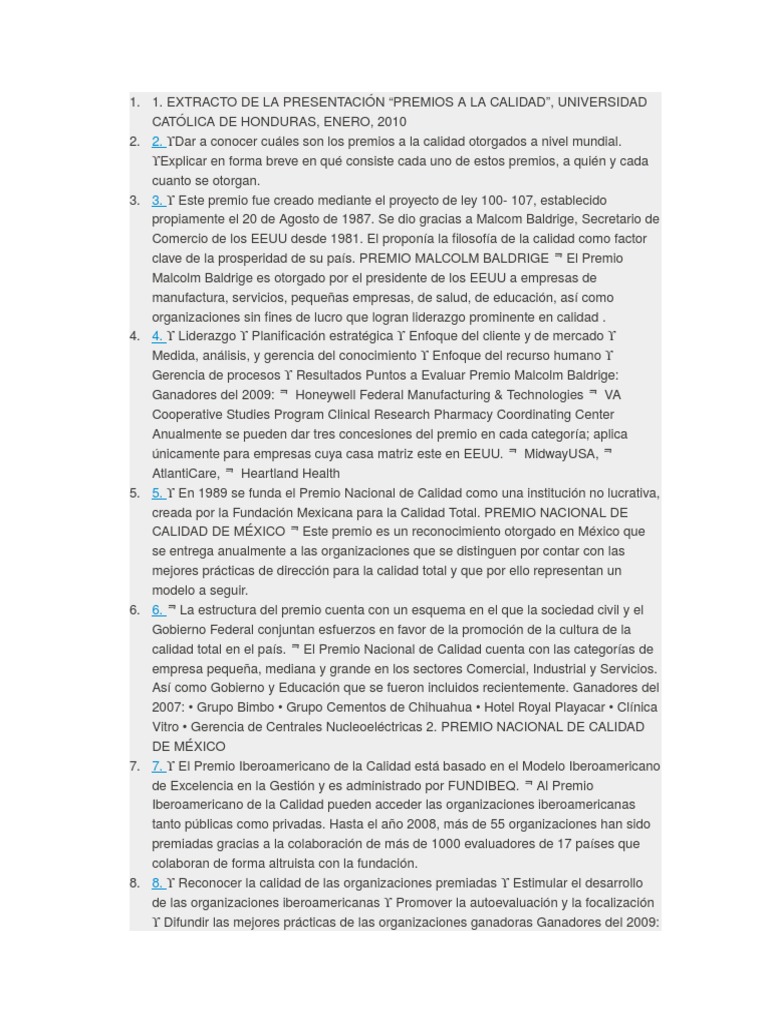 2. 2. Dar a conocer cules son los premios a la calidad otorgados a nivel mundial.