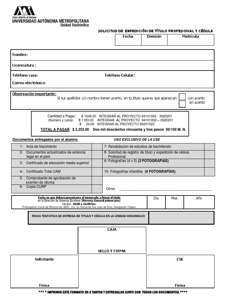 FECHA TENTATIVA DE ENTREGA DE TITULO Y CDULA EN LA UNIDAD XOCHIMILCO