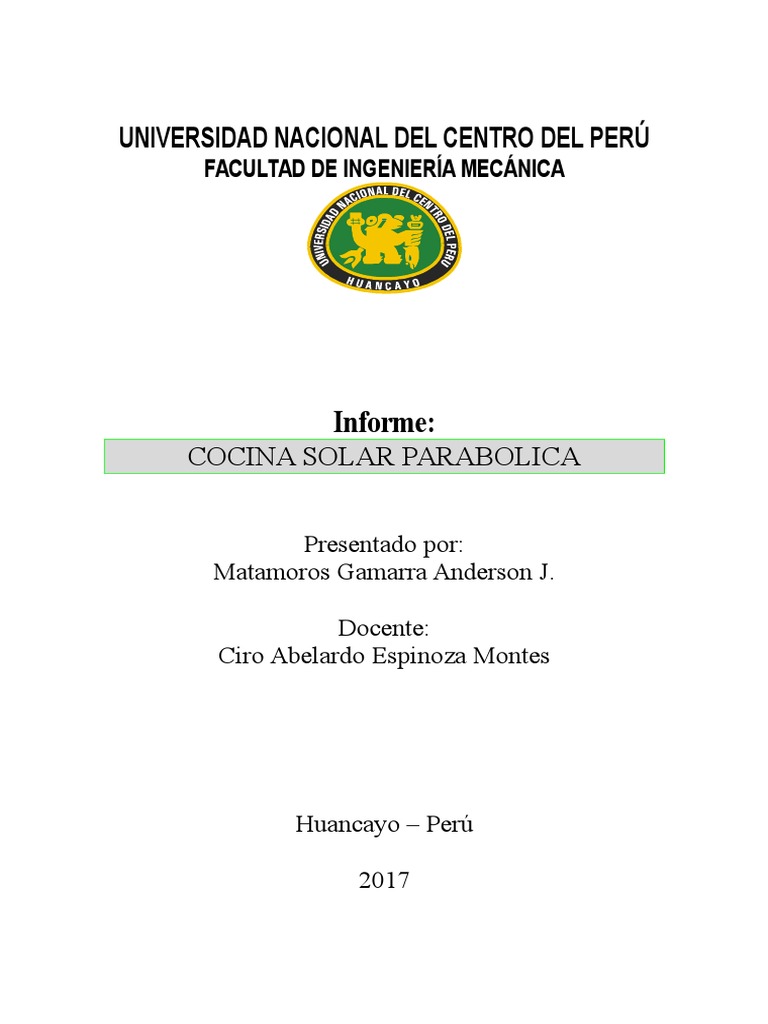 Ttulo: Diseo y construccin de un cocina solar parablica