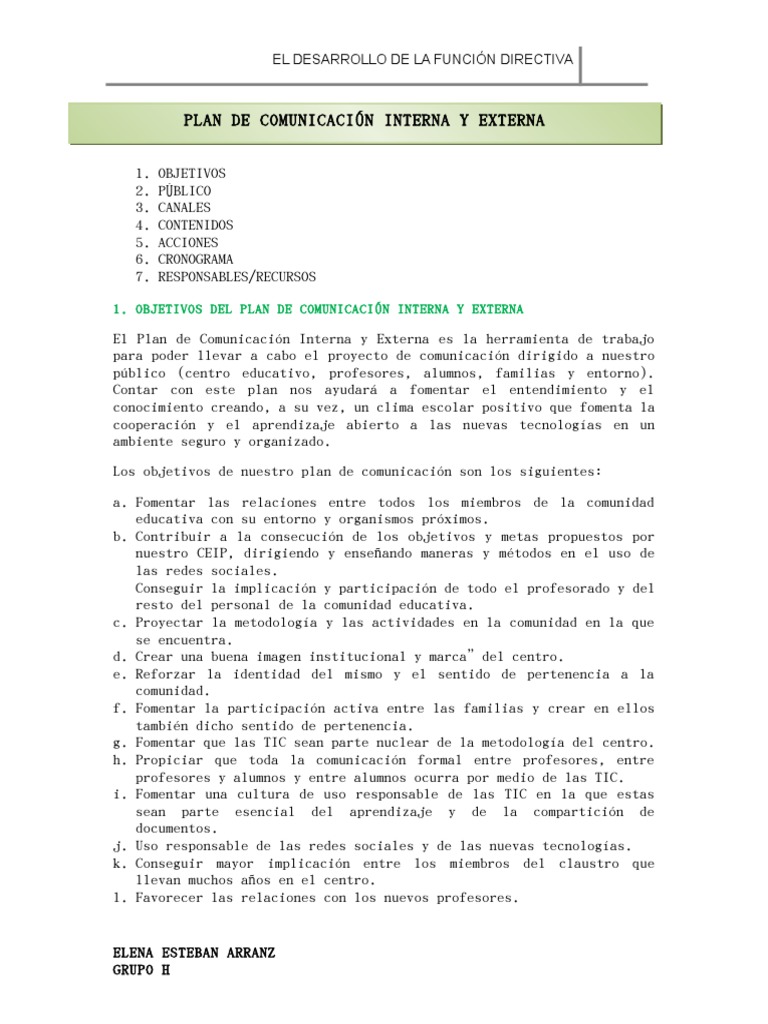 1. OBJETIVOS DEL PLAN DE COMUNICACIN INTERNA Y EXTERNA