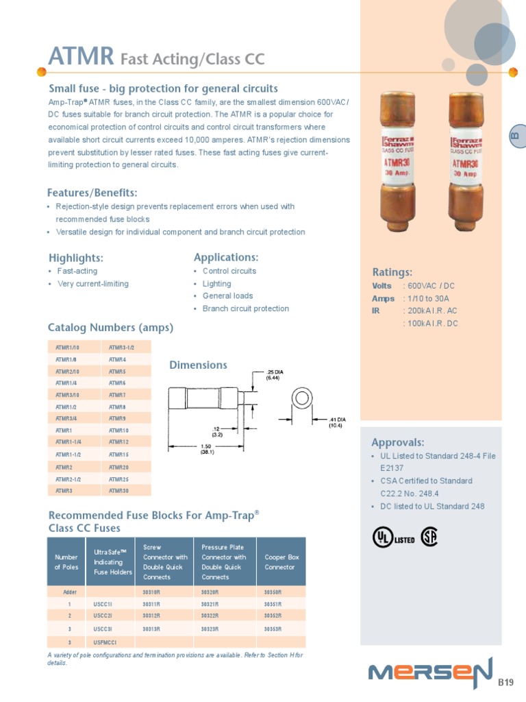 Amp-Trap ATMR fuses, in the Class CC family, are the smallest dimension 600VAC/