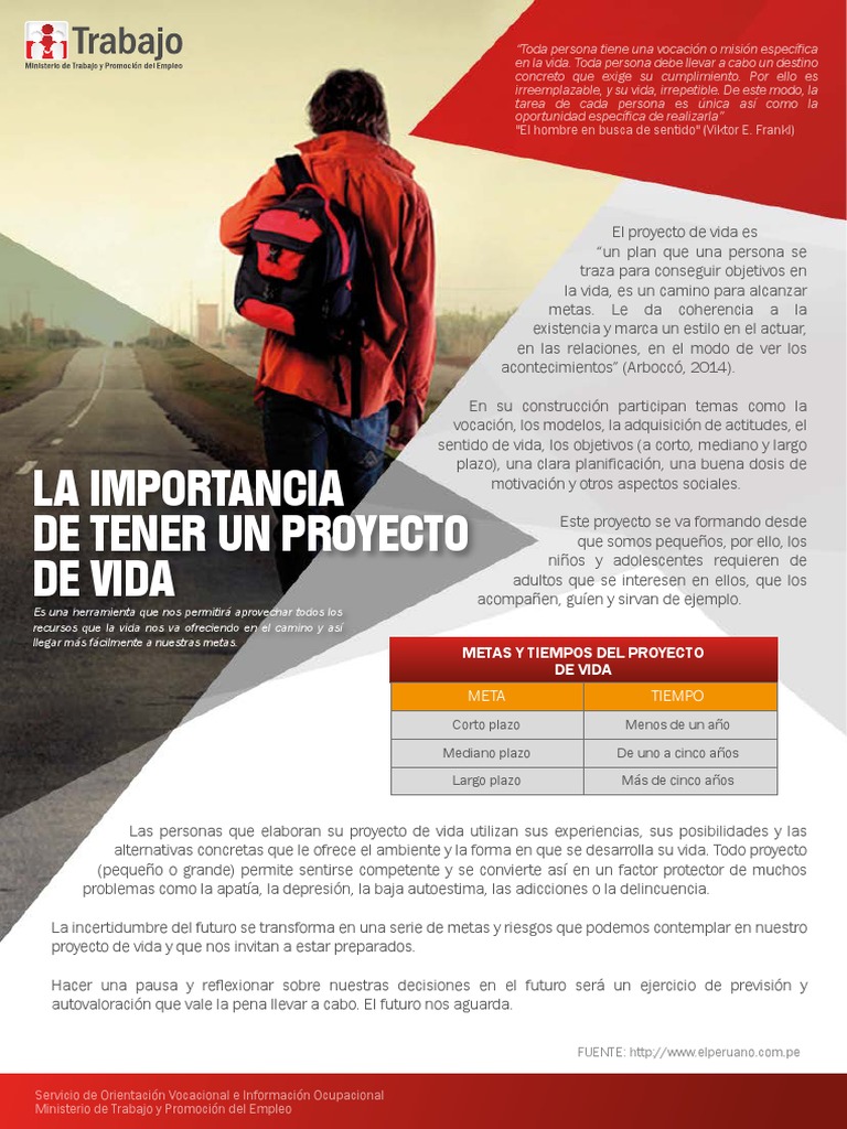 Las personas que elaboran su proyecto de vida utilizan sus experiencias, sus posibilidades y las