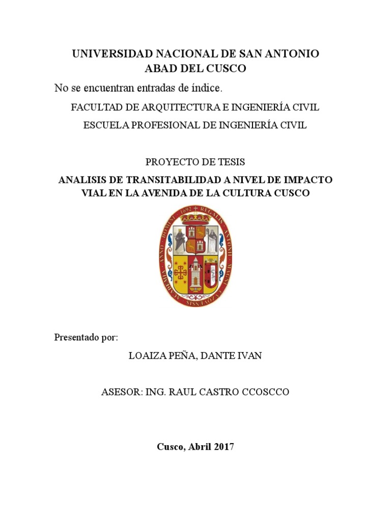 El presente proyecto de Tesis ANALISIS DE LA TRANSITABILIDAD A NIVEL