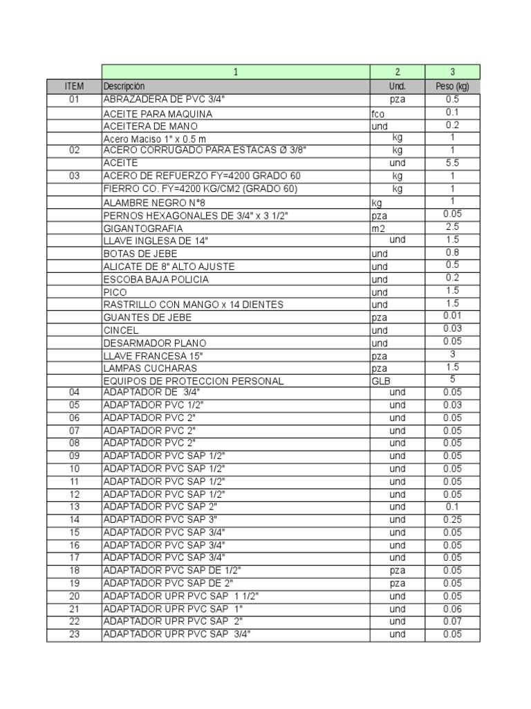 REDUCCION DE 2 1/2" x 2" und 2.00 0.0050 0.01 0.01 0.00