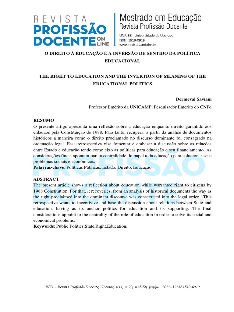 O DIREITO EDUCAO E A INVERSO DE SENTIDO DA POLTICA