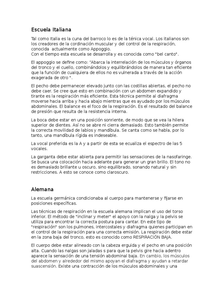 Las tcnicas de respiracin en la escuela alemana implican el uso del torso