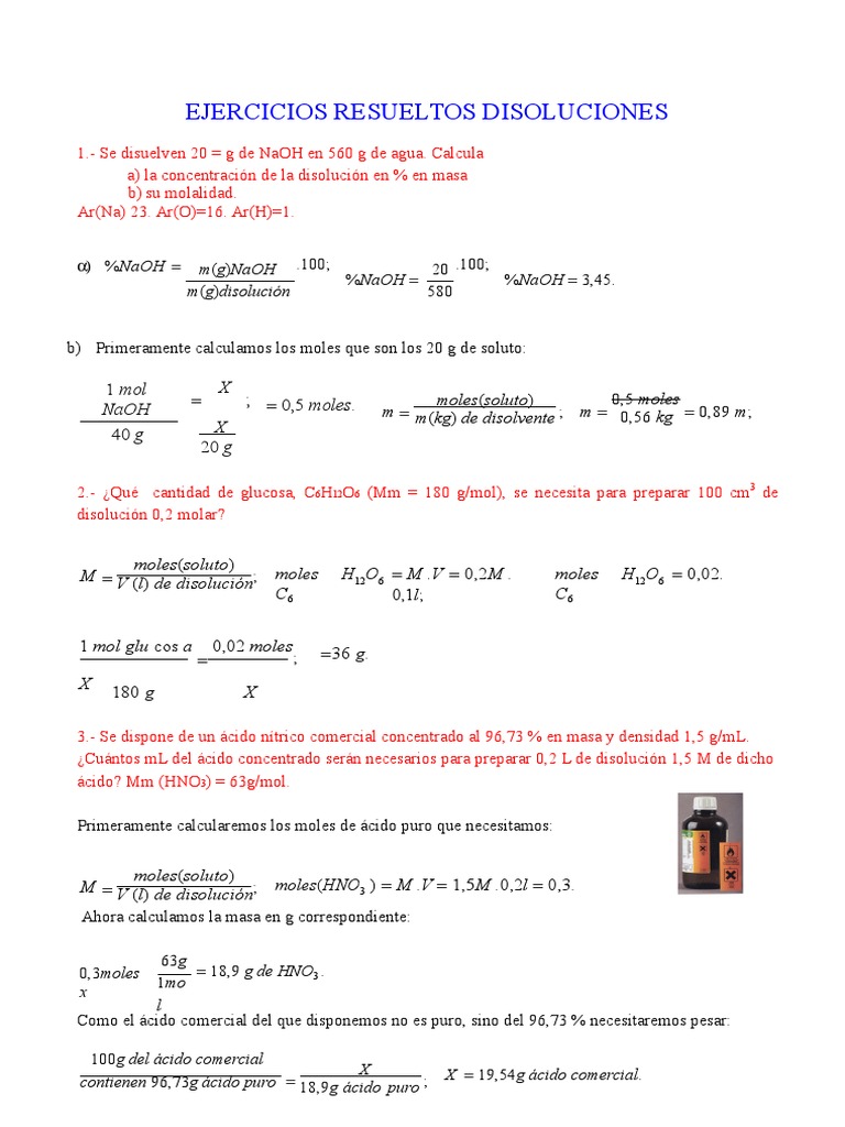 3.- Se dispone de un cido ntrico comercial concentrado al 96,73 % en masa y densidad 1,5 g/mL.