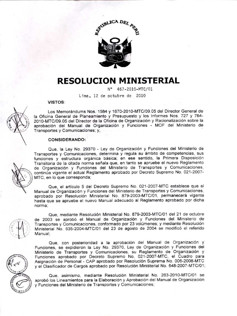 Manual de Organización y Funciones MTC
