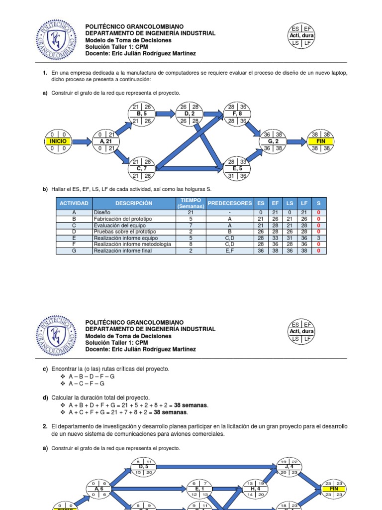 Solucin Taller 1: CPM