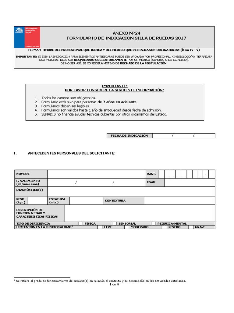FORMULARIO DE INDICACIN SILLA DE RUEDAS 2017