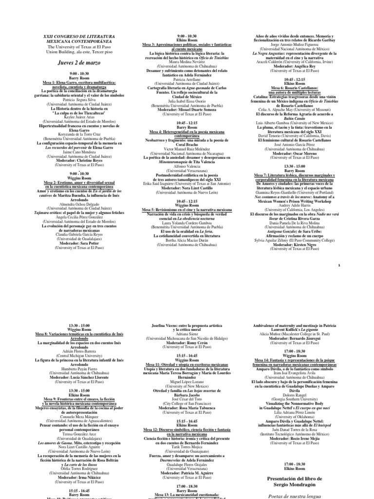 Mesa 1: Elena Garro, escritora multifactica: (Universidad Autnoma de Ciudad Jurez) Elkins Room
