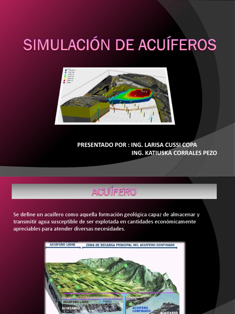 un acufero, se lleva a cabo a travs de ecuaciones diferenciales (e. g. de flujo, e. g.