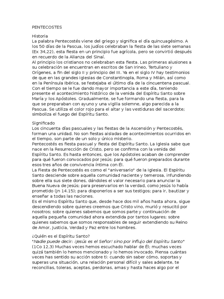 La palabra Pentecosts viene del griego y significa el da quincuagsimo. A