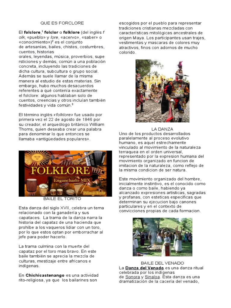 El folclore,1 folclor o folklore (del ingls f caractersticas mitolgicas ancestrales de