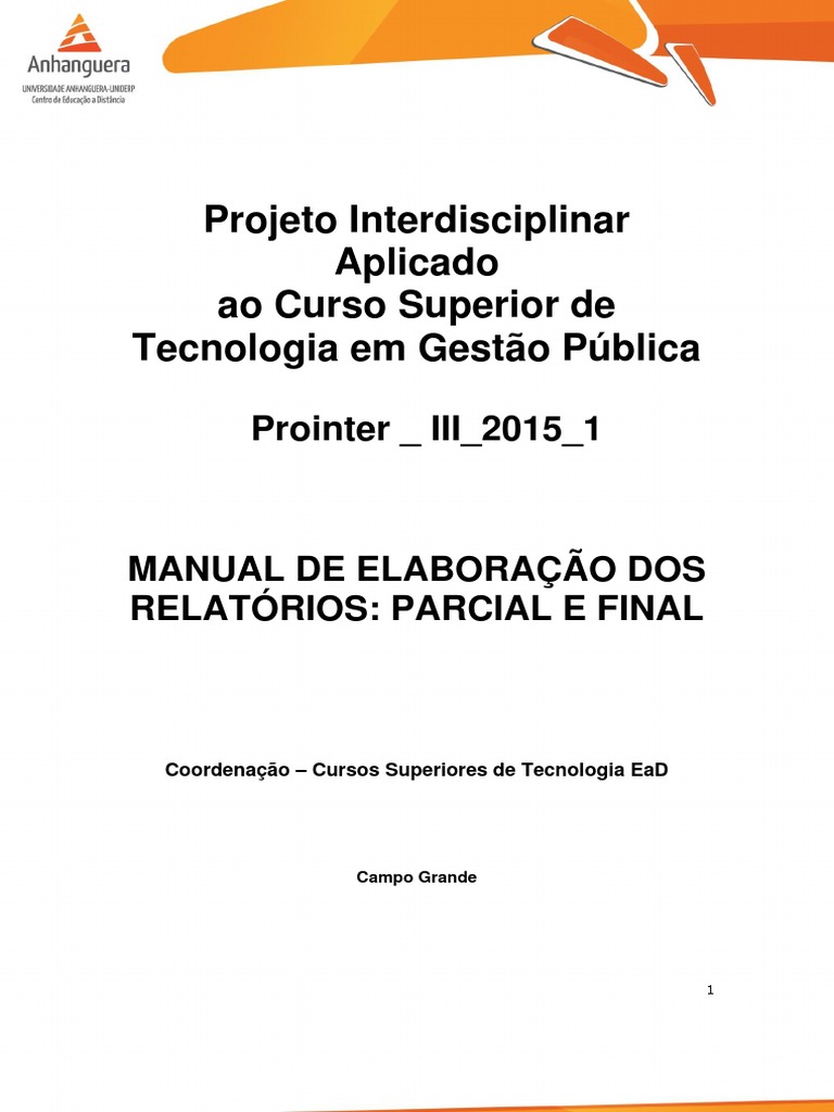 b) Ao final dessa etapa 1, apresentar um Relatrio (parcial) dentro do