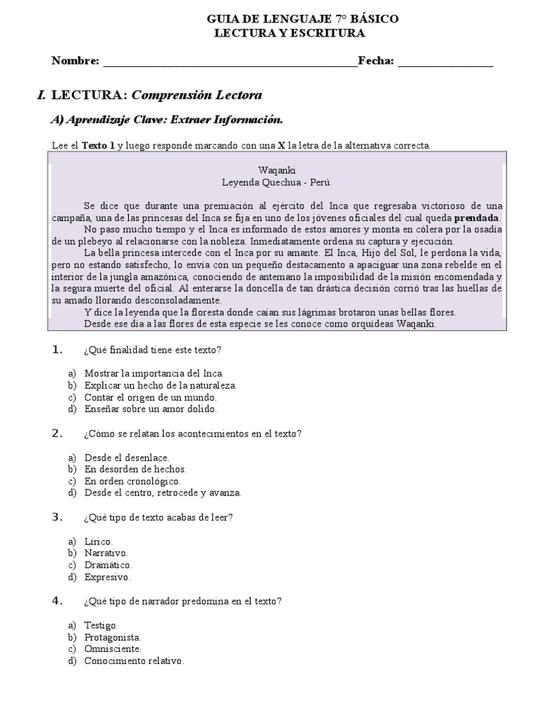 I. LECTURA: Comprensin Lectora