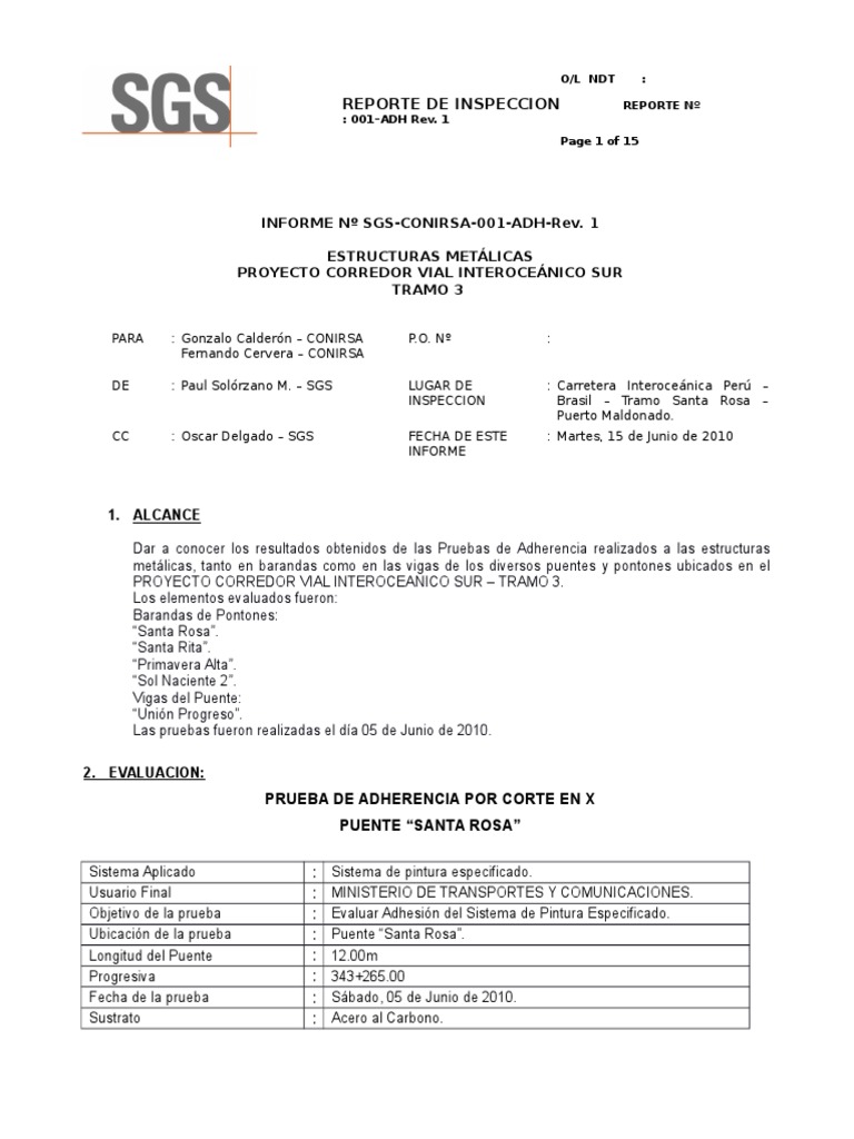 INFORME N SGS-CONIRSA-001-ADH-Rev. 1