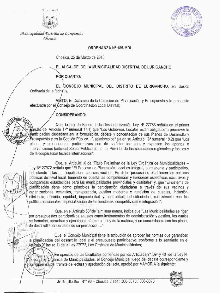 PLAN DE DESARROLLO CONCERTADO DEL DISTRITO DE LURIGANCHO CHOSICA AL 2025