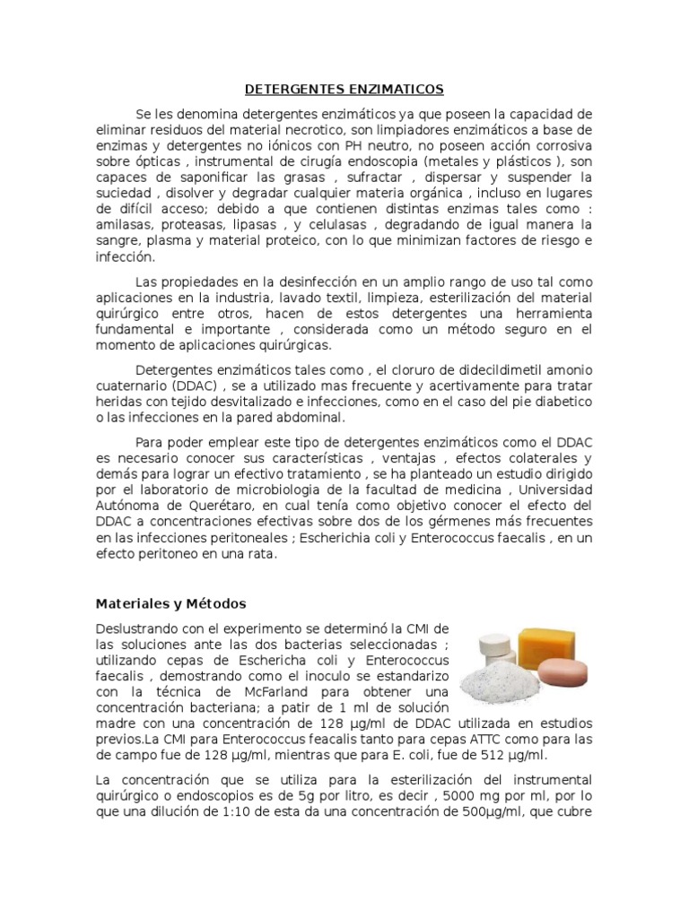 Para poder emplear este tipo de detergentes enzimticos como el DDAC