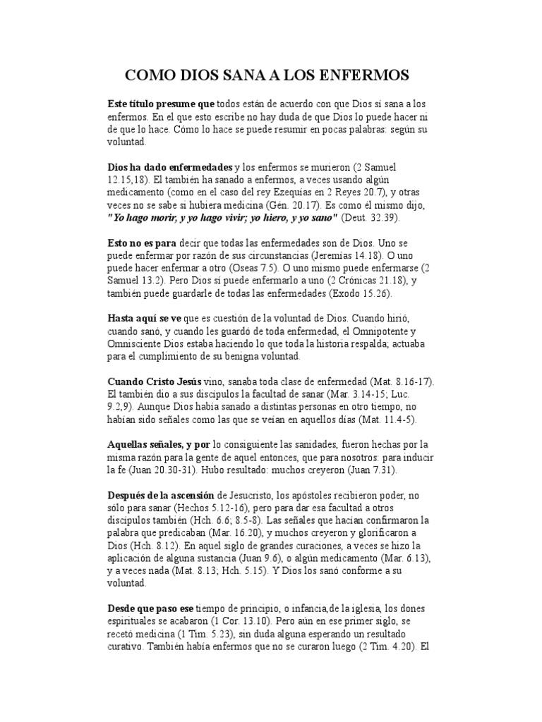 enfermos. En el que esto escribe no hay duda de que Dios lo puede hacer ni