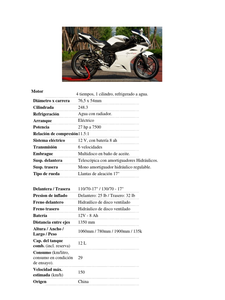 Delantera / Trasera 110/70-17" / 130/70 - 17"