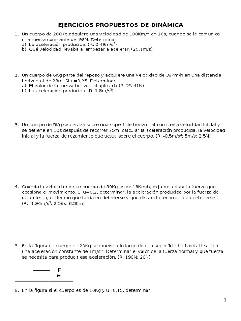 1. Un cuerpo de 200Kg adquiere una velocidad de 108Km/h en 10s, cuando se le comunica