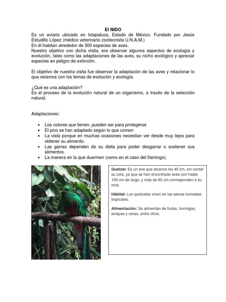 evolucin, tales como las adaptaciones de las aves, su nicho ecolgico y apreciar