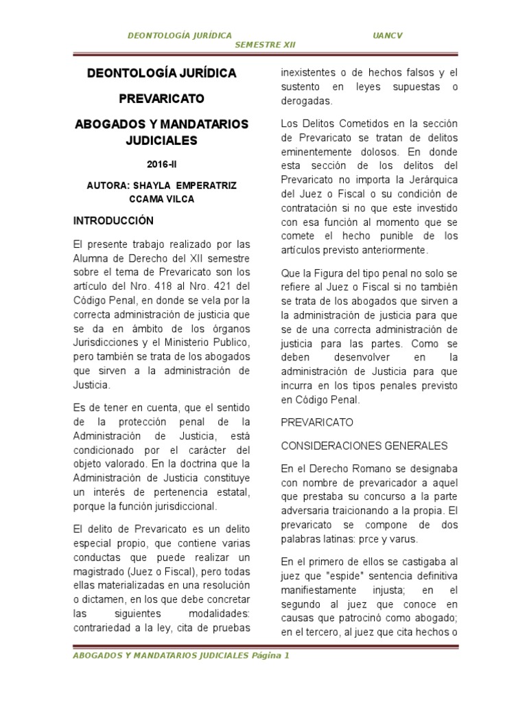 sobre el tema de Prevaricato son los Que la Figura del tipo penal no solo se