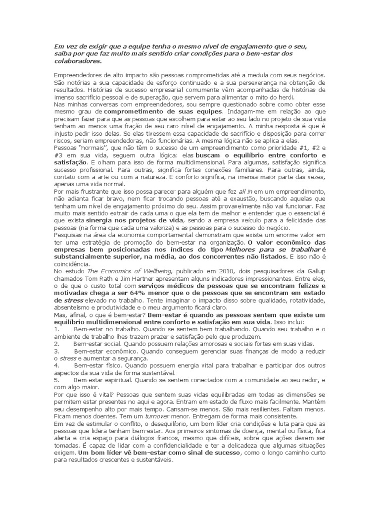 exigem. Um bom lder v bem-estar como sinal de sucesso, como o longo caminho curto