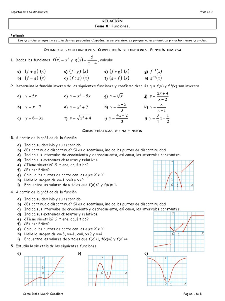 2. Determina la funcin inversa de las siguientes funciones y confirma despus que f(x) y f -1(x) son inversas.