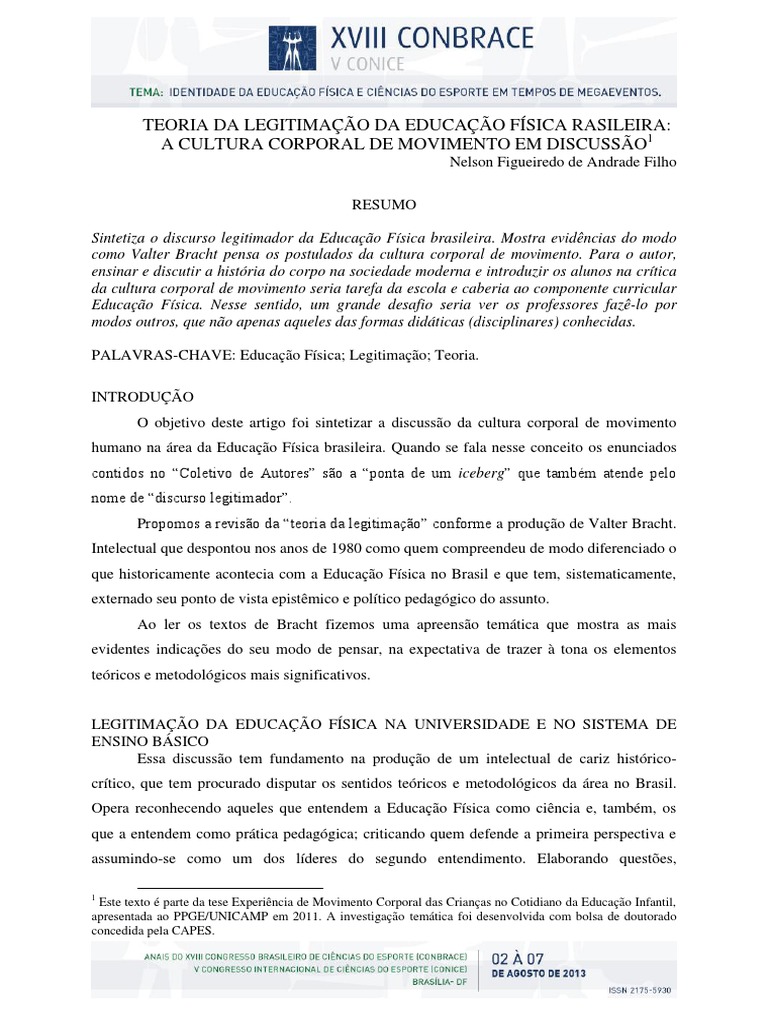 Educao Fsica brasileira, estimular a realizao da reflexo dos seus postulados nos
