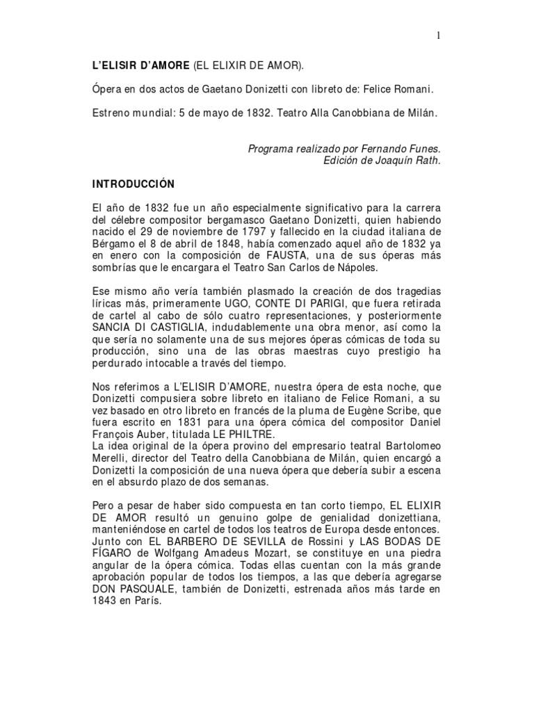 LELISIR DAMORE (EL ELIXIR DE AMOR).