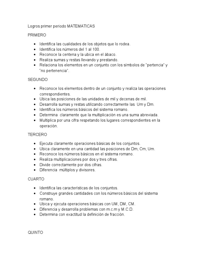 Logros primer periodo MATEMATICAS