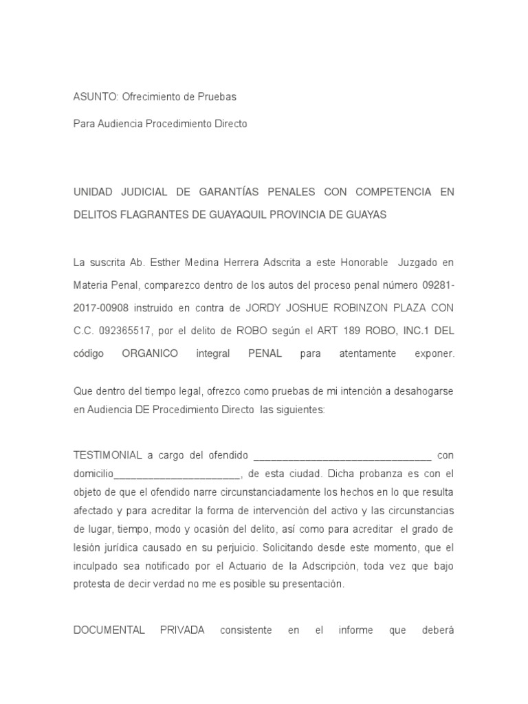 Para Audiencia Procedimiento Directo