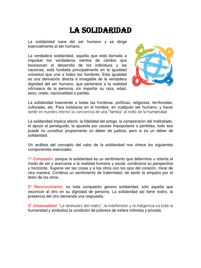 Un anlisis del concepto del valor de la solidaridad nos ofrece los siguientes