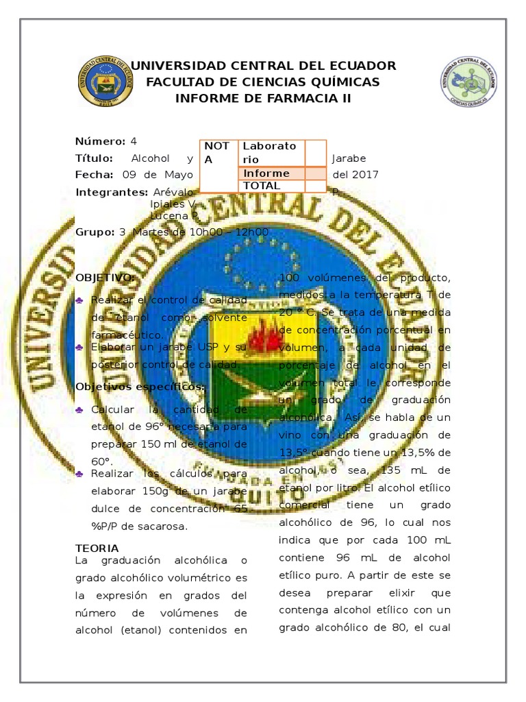 elaborar 150g de un jarabe etanol por litro. El alcohol etlico