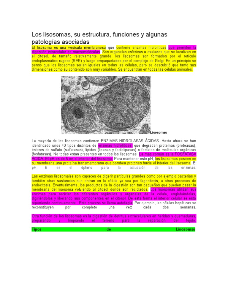 Los lisosomas, su estructura, funciones y algunas