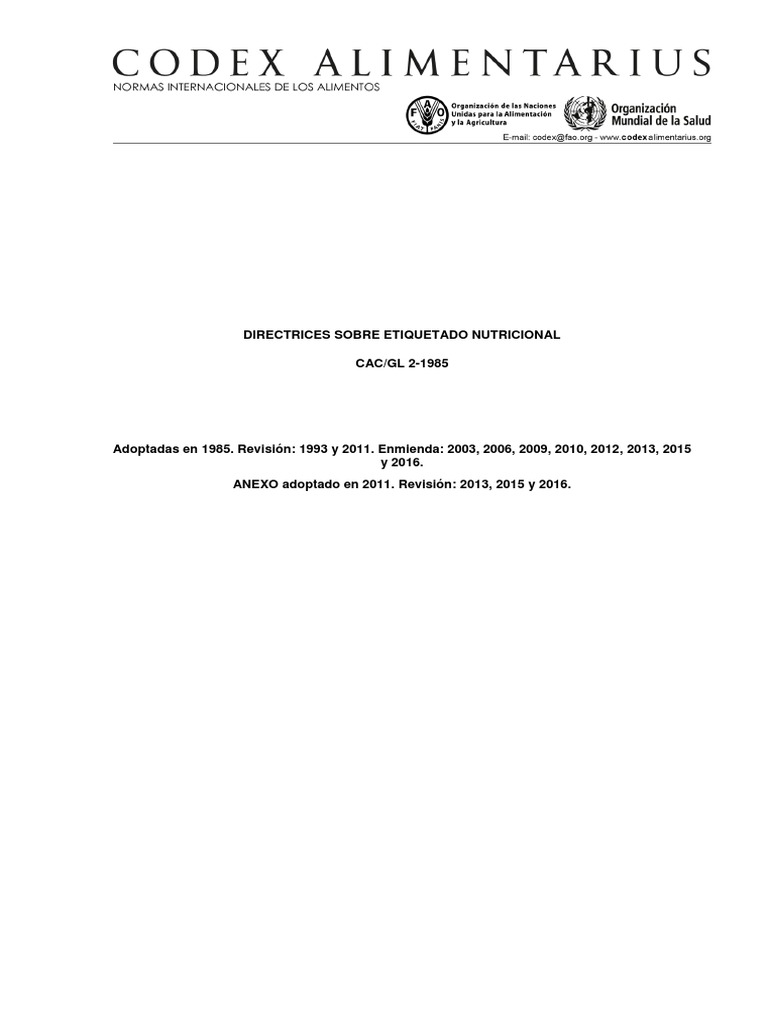 Estas directrices se aplican al etiquetado nutricional de todos los alimentos. Se podrn elaborar