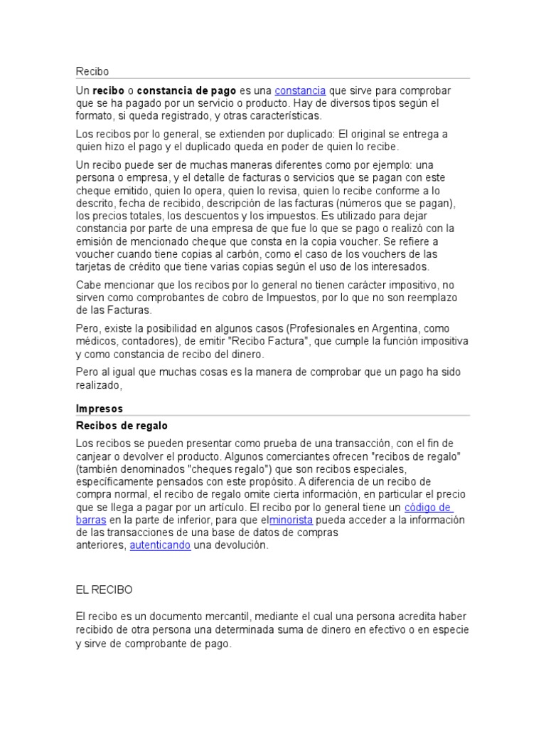 que se llega a pagar por un artculo. El recibo por lo general tiene un cdigo de