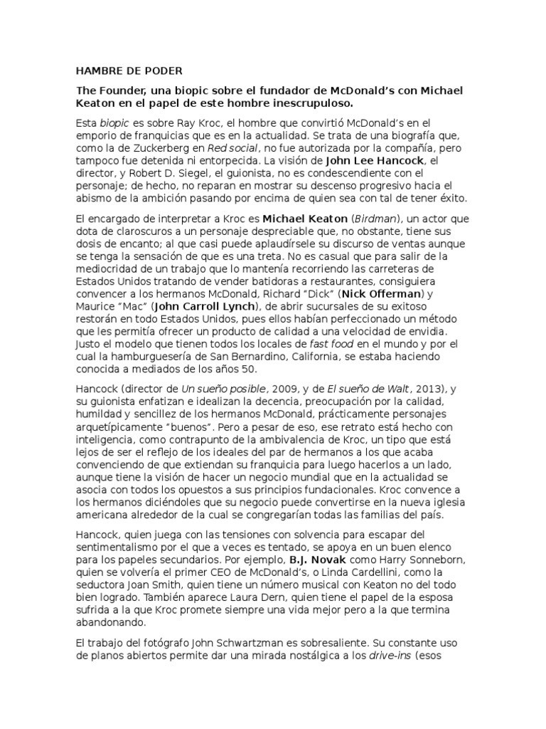 Esta biopic es sobre Ray Kroc, el hombre que convirti McDonalds en el