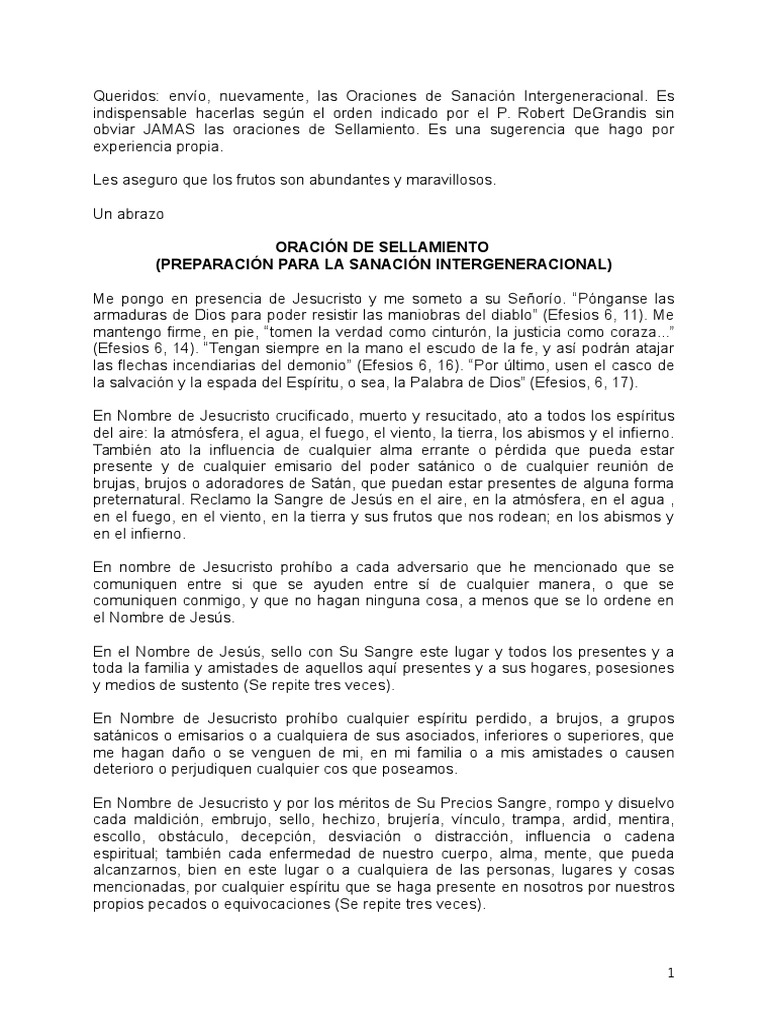 Queridos: envo, nuevamente, las Oraciones de Sanacin Intergeneracional.
