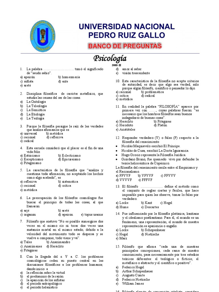 c) Anaxímenes d) Heráclito 15. Filósofo que afirma “cada una de nuestras
